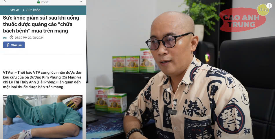 Cụ thể, Báo VTV có lên bài viết về sản phẩm Cao Trung Sơn ngày 29/08/2024. Anh cho biết mình rất không vui, và đây là bài báo ảnh hưởng rất lớn tới Hộ kinh doanh Cao Anh Trung. Làm cho khách hàng, đối tác có hình ảnh xấu về sản phẩm Cao Trung Sơn.