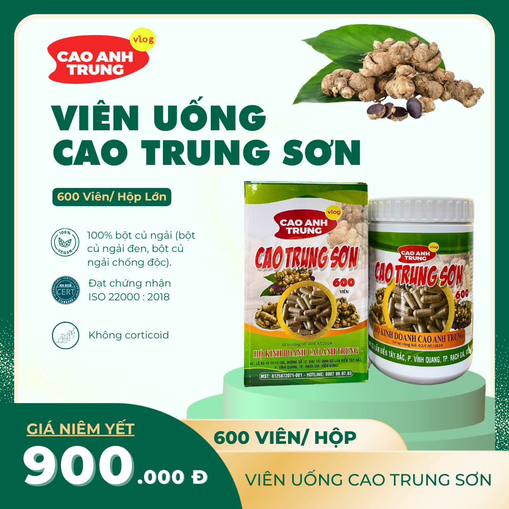 Sản phẩm Cao Trung Sơn của anh Cao Anh Trung, được chứng nhận Sản phẩm - Dịch Vụ Chất Lượng Vàng 2024, là thành quả của sự tận tâm và sáng tạo trong lĩnh vực chăm sóc sức khỏe. Với nguyên liệu từ củ ngải tự nhiên, Cao Trung Sơn cung cấp các sản phẩm bột và viên uống có công dụng cải thiện sức khỏe toàn diện, giảm viêm, hỗ trợ giấc ngủ, tăng cường đề kháng. Nhờ quy trình sản xuất hiện đại, sản phẩm giữ nguyên dưỡng chất và độ tinh khiết, mang lại hiệu quả tối ưu cho người tiêu dùng.